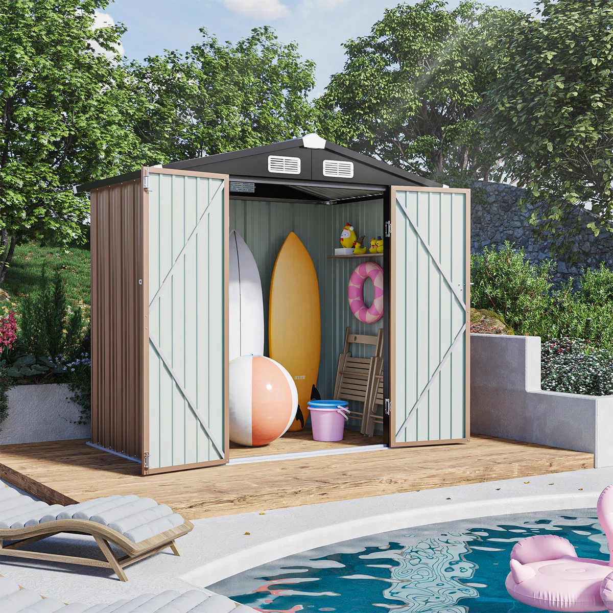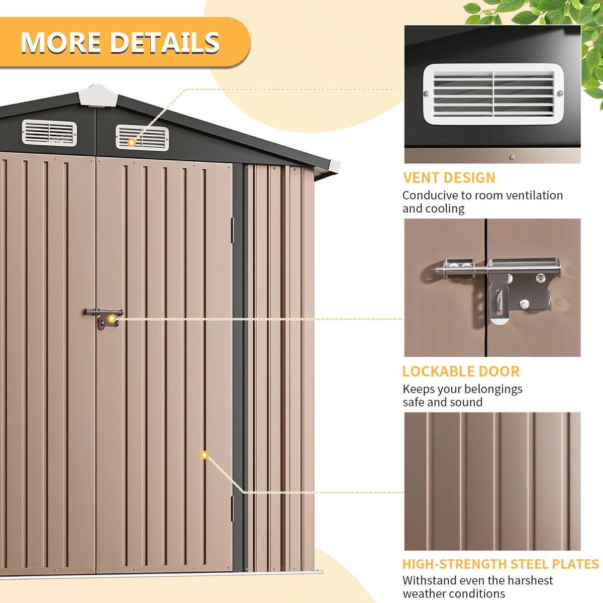 - Unique Excellent Design: The sloped roof design not only maximizes usable space but also prevents rainwater from pooling. Specifically engineered air vents ensure proper ventilation inside. Pad-lockable doors offer convenient access to stored items while boosting security.