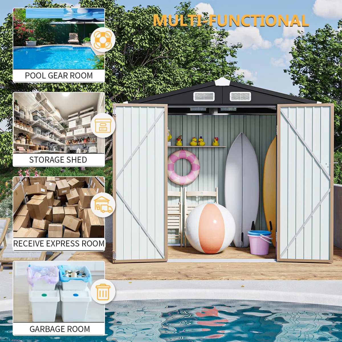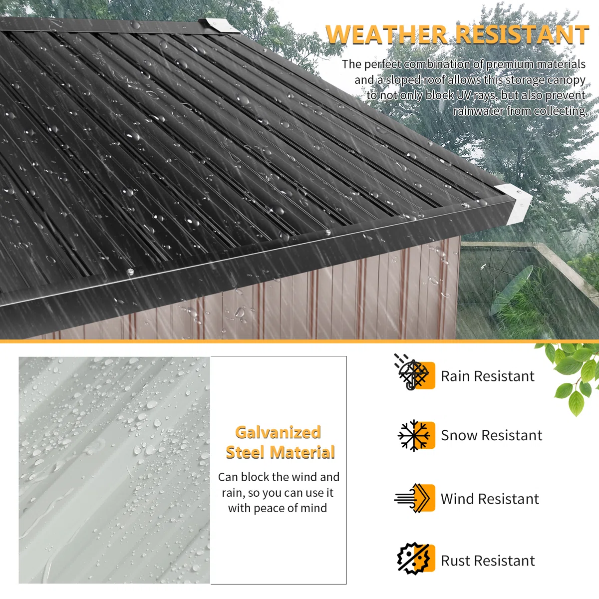The storage shed’s structure is engineered for strength and durability. Constructed from powder-coated thick galvanized steel, it offers enhanced stability and can withstand diverse weather conditions with ease. Additionally, its high-quality lockable door enhances security. Versatile in application, it suits various settings including patios, gardens, and backyards, offering ample space to declutter and organize.