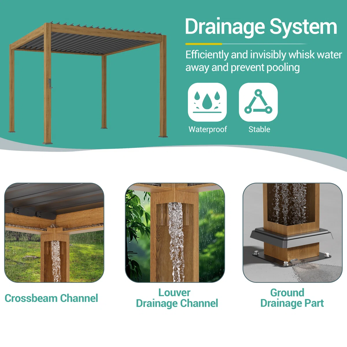 • Can It Withstand the Elements? The pergola uses high-quality aluminum columns that are rot-resistant and durable for all seasons. Whether in scorching sun or heavy rain, it provides reliable protection.